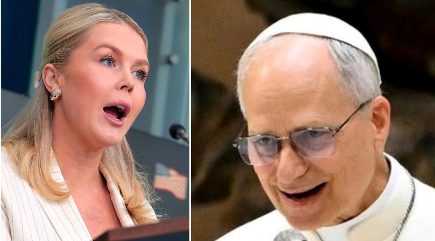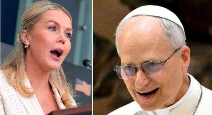“I am speaking up for every spiritual leader, every community, and every person who has been forced into silence just to survive within this system. And let me be clear — you are nothing but a hypocrite.” The studio fell silent. Karoline Leavitt’s face flushed red as she sprang from her seat. “A hypocrite?!” she snapped, her voice sharp and trembling with anger. “I represent true American values — something the power and position of a Pope in the Vatican could never understand!” Pope Leo XIV did not flinch. He leaned slightly forward, his voice cutting through the tense air like a blade. “Values?” he said slowly. “Then start living up to them — instead of just shouting them at the camera.” The host tried to diffuse the tension, but it was too late — the internet had already exploded. Within minutes, the clip began spreading rapidly across social media. Many praised the Pope as “a spiritual leader unafraid of power, willing to speak the truth,” while critics accused him of “crossing the line between religious leadership and political confrontation.” The confrontation lasted less than a minute, but it was enough to create a shockwave across media and politics, leaving millions asking the same question: What finally pushed Pope Leo XIV to break his silence — and fire back live on air?